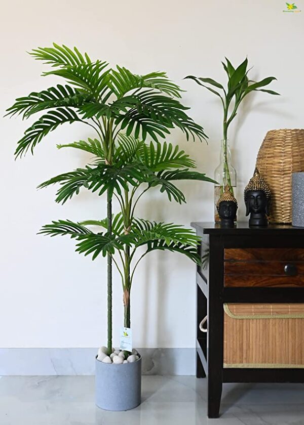 Care & Maintenance : Our faux Areca Palm is designed for indoor use and is low maintenance, requiring minimal care to keep it looking its best. It doesn’t require water & care like a real plant. It is a great option to add some fun and happiness to your growing space without any hassle. As it is dustproof in nature, you hardly require to clean it with the help of a dry cloth.