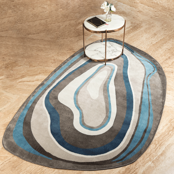 Versatility is key with this abstract area rug. This grey rug showcases intriguing concentric figures. The subtle incorporation of white and blue color allows the design to pop and add interest…n