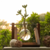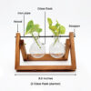 Round bottom flasks hanging on a wooden tray, perfect for those science enthusiasts! Our flask planters have a Minimal style using organic materials and a touch of modernity are perfect decor pieces for all spaces- indoor or outdoor. nThe ideal decor piece to be kept on your side table, balconies, or even study tables, these flask planters bring a sense of style and calmness together.