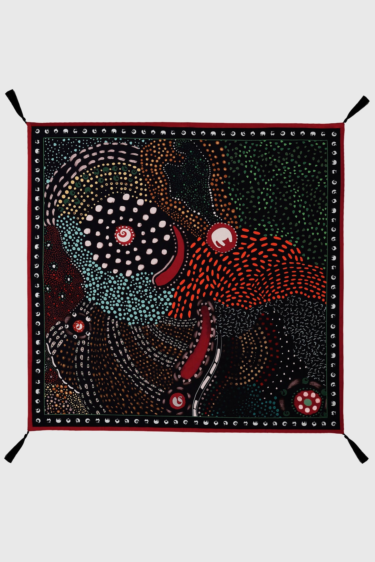 The Nebulous Rug explores the play of cells and veins in the human body through the medium of textures and burst of colors. Crafted in light-weight canvas with tassels, this statement accent is perfect as a floor accent, or to add ornamentation to a couch, as a throw.