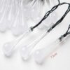BUBBLE WATERDROP SHAPE – Multicolor LED String light with 25 White Crystal Drop styled Micro LED lamp bulbs in a string, size of Drop is 7.5 CM and spaced every 4.4 inch, Total Length 11.6 Feet. Plug-In Powered.